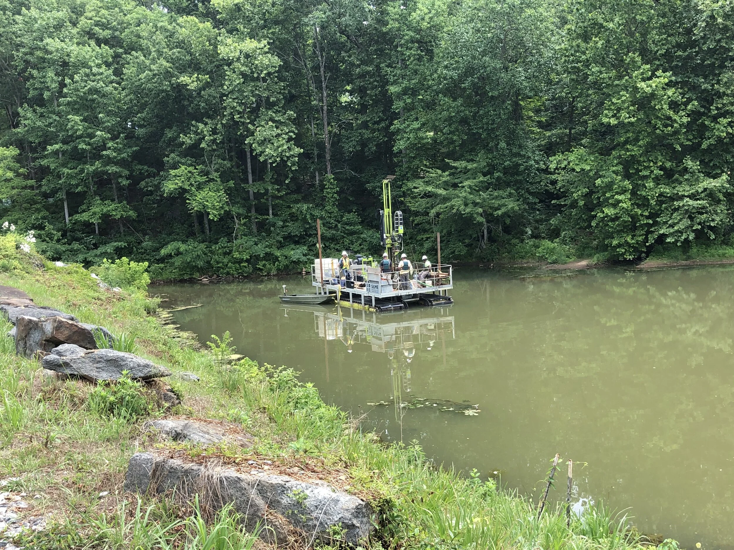 The goal of the exploration is to identify the depth of rock formation near the existing dam. This information will guide the engineers as they design a temporary erosion and sediment control structure to allow for the safe dewatering of College Lake.