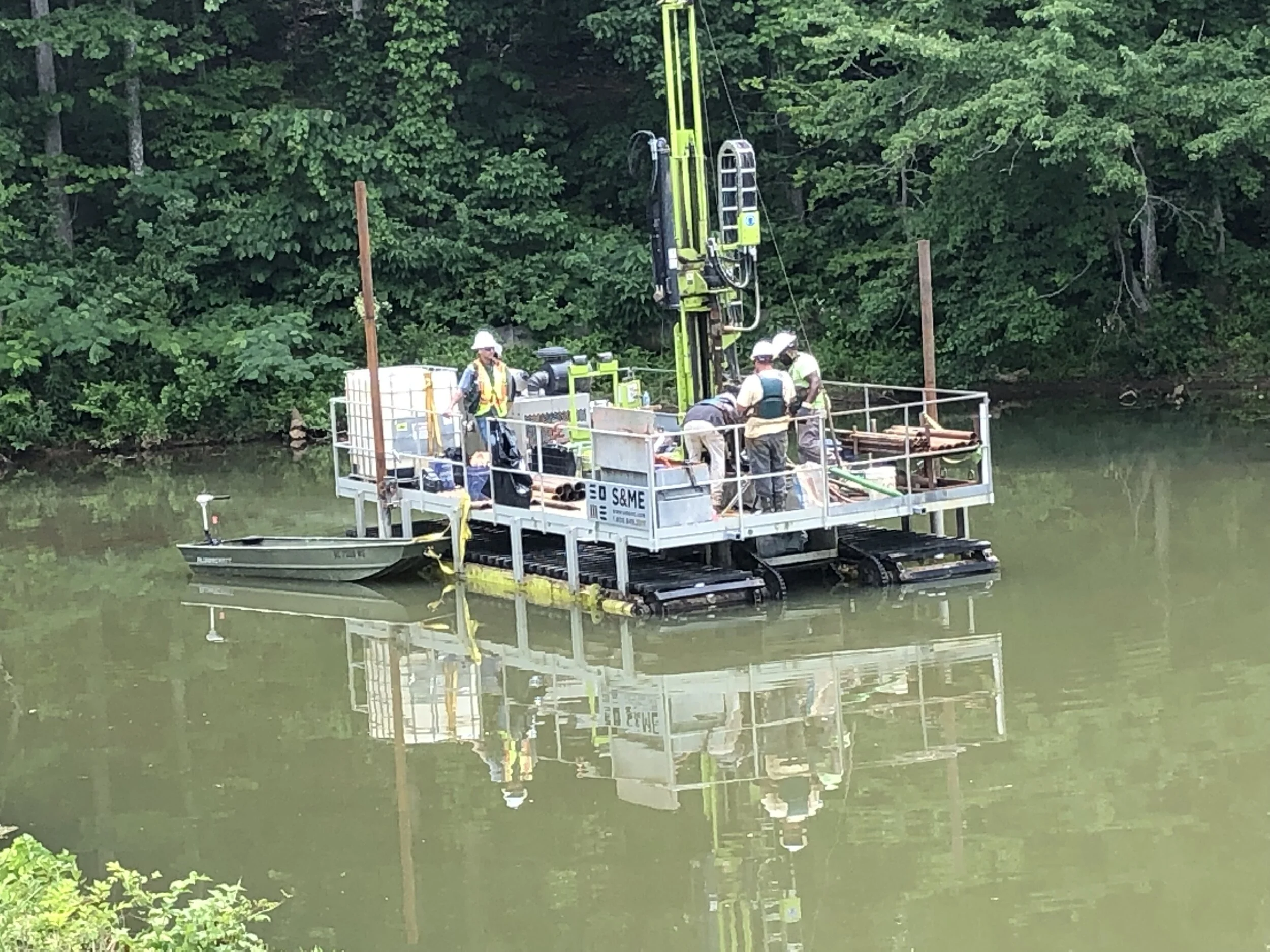 Progress is being made on the removal of College Lake Dam. In early June 2021, the City’s contractor, AECOM, finished geotechnical field exploration in College Lake. The team performed six soil explorations using an amphibious drill rig.